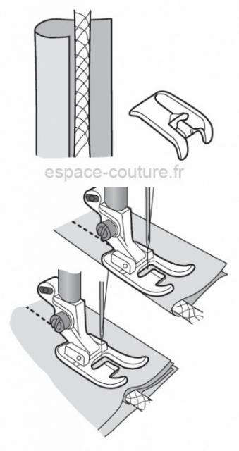 Il fonctionne comme le pied passepoil mais il est conçu pour des cordons plus épais.
