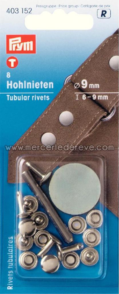 Les rivets tubulaires de Prym sont disponibles en différentes tailles et sont ainsi adaptés à des épaisseurs de matériaux variées. Les rivets se différencient par le diamètre de la tête ainsi que la longueur de la tige. Plus la tige est longue, plus le matériau à riveter (tel que le cuir) peut être épais. L’outil adapté à la pose des rivets tubulaires se trouve dans l’emballage. La pose des rivets ne nécessite qu’un marteau. Les rivets tubulaires sont en laiton inoxydable de couleur argenté et ils confèrent une apparence soignée partout là où ils sont posés