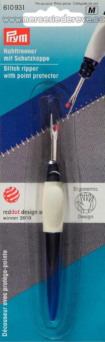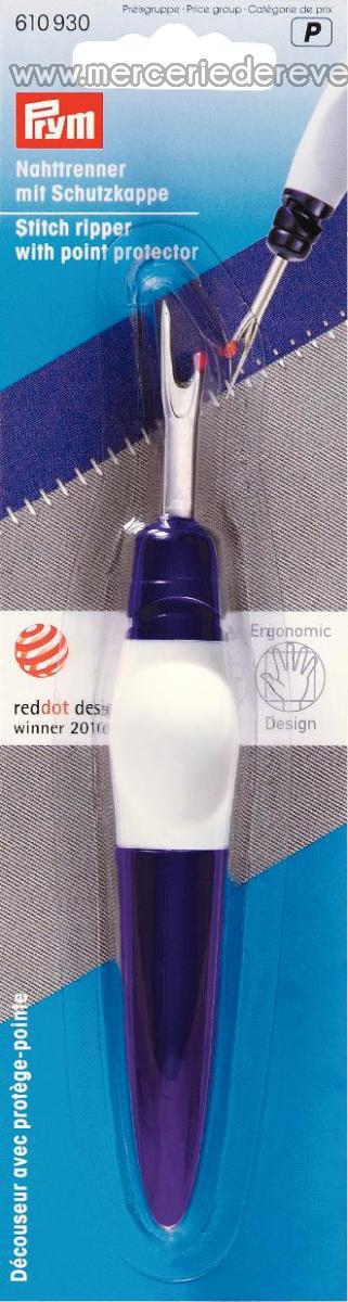 Tranchant et maniable, telles sont les caractéristiques du découseur de la gamme prym.ergonomics de Prym. Idéal pour découdre les fils, le découseur avec sa lame tranchante et sa pointe à boule convainc tout particulièrement grâce à sa poignée ergonomique. Mous et antidérapants, les creux de saisie permettent de travailler longtemps sans fatigue. Un découseur robuste de la Marque Prym qui, en plus d’un design attrayant, se distingue par une très bonne prise en main et une sécurité assuré par un capuchon de protection. Vous pouvez placer le capuchon de protection à l’arrière du découseur pour en rallonger la poignée. Le découseur de Prym peut également être suspendu. Découseur pratique dont l’ergonomie convainc les débutants comme les professionnels.